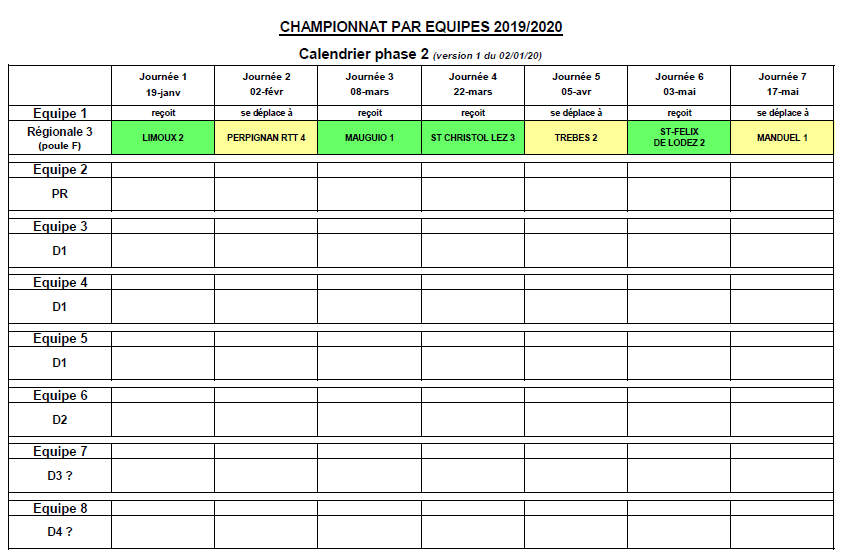 Première bonne nouvelle de cette année 2020, nous avons reçu le calendrier pour notre équipe une (la R3). 👍 Pour les départementales ça arrive ne vous inquiétez pas. 😉 calendrier phase 2
